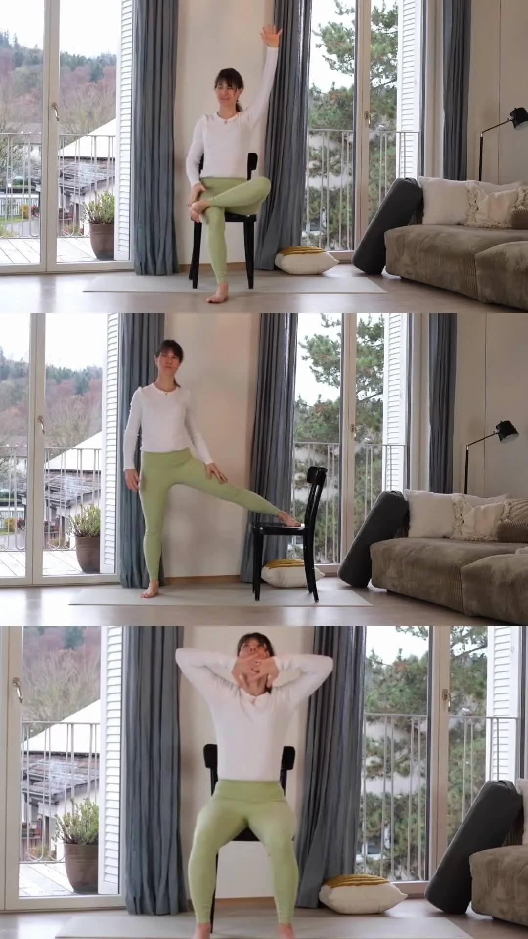 In diesem Video machen wir 6 Übungen. Wir massieren zu beginn die Fusssolen, stretchen die Zehen und den Fussrücken sowie stretchen und kreisen die Fussgelenke. Zum Schluss legen wir die Beine hoch, sei es auf dem Stuhl, auf dem Sofa oder auf die Wand wie bei Vaparita Karani (siehe Bild unten). Insbesondere diese letzte Übung ist der wirksam gegen Wassereinlagerungen während der Schwangerschaft und ich empfehle dir diese Übung jeden Tag bis zu 30min. zu praktizieren. Dabei kannst du schöne, ruhige Musik hören, den Babybauch massieren und in den Bauch Atmen. Somit hast du gleichzeitig auch Baby Bonding praktiziert. Mehr über Baby Bonding findest du in diesem Vlog. Auch Nachts empfehle ich dir mit leicht erhöhten Beinen zu schlafen, indem du ein Kissen unterlegst.